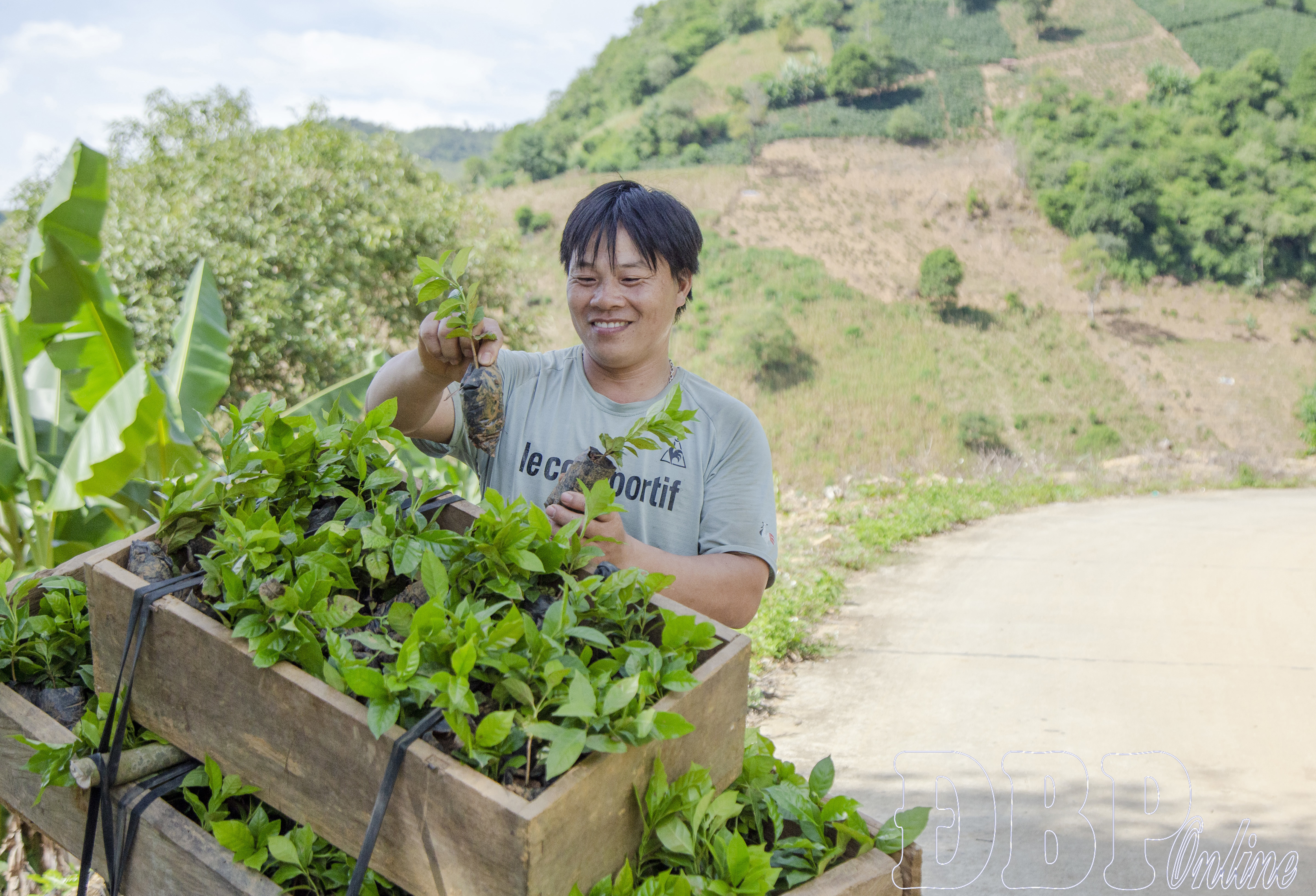 Anh Vừ A Minh, Bí thư bản Chế Á, người đầu tiên tự ươm trồng cà phê trong bản chia sẻ: Năm 2009 trong bản có hộ đầu tiên trồng cà phê, sau đó tôi và 2 hộ nữa trồng theo, tổng diện tích chỉ một vài héc ta. Sau khi thấy cây phát triển tốt, hợp khí hậu, thổ nhưỡng mọi người dần mở rộng, khi đó mua giống chủ yếu tại Mường Ảng, vận chuyển xa, ít kinh nghiệm lựa chọn, chăm sóc nên trồng cây bị chết, sinh trưởng kém. Năm 2014, sau khi bắt đầu được thu hoạch, tôi tham gia các buổi tập huấn tại xã, đồng thời tự mày mò, học hỏi kỹ thuật ươm, trồng cà phê nhằm chủ động giống cũng như chất lượng cây trồng. Sau vài năm tự ươm, cây giống phát triển tốt, các nương rẫy trồng ngô, sắn của gia đình dần chuyển sang trồng cà phê. Chỉ tính năm nay, gia đình tôi mở rộng thêm 1,5ha cà phê, đất của gia đình còn khoảng 0,5ha, sau thu hoạch sẽ ươm và trồng nốt. Thời điểm hiện tại, tổng diện tích gia đình có hơn 7ha cà phê, trong đó diện tích cho trái, được thu 4ha. Hiện tại mới thu khoảng 60% diện tích, chưa trừ chi phí thu về hơn 900 triệu đồng. Nhờ làm vườn ươm, chủ động con giống hiệu quả nên trong và ngoài bản tích cực làm theo, diện tích cà phê cũng nhờ vậy mà mở rộng nhanh chóng.