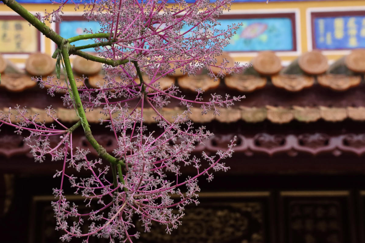 Sắc hồng dịu dàng của hoa ngô đồng không chỉ làm mê đắm biết bao du khách mà còn góp phần tô điểm thêm cho vẻ đẹp cổ kính của Kinh thành Huế. Ảnh: T.N.