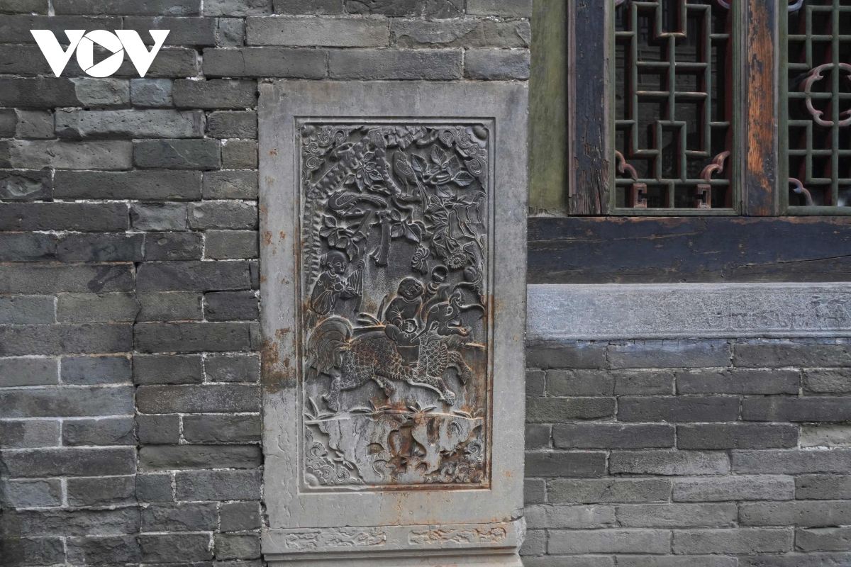 Điêu khắc trên gạch - một trong Tam điêu nổi tiếng, gồm điêu khắc trên đá, trên gỗ và trên gạch, ở Vương gia đại viện.