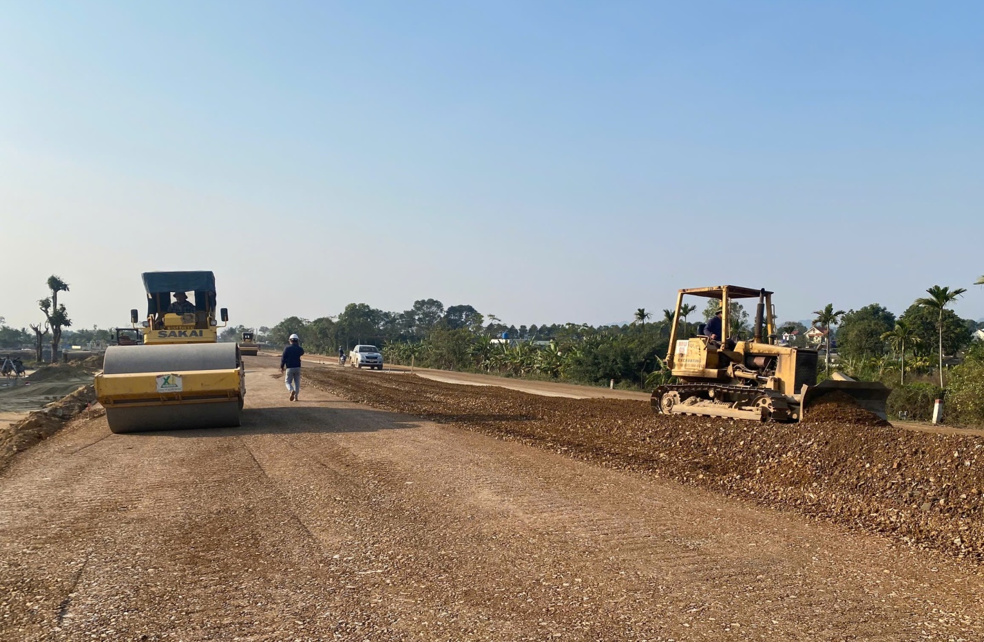 Anh Vũ Văn Hiệu, cán bộ kỹ thuật của Công ty CP Xây dựng và thương mại Xuân Hưng, một trong những nhà thầu thi công cho hay: "Công ty chúng tôi đang thi công đoạn từ Km 10+600 – Km 14+450, đã hoàn thành 75% khối lượng công việc. Nếu được bàn giao mặt bằng, chúng tôi sẽ thi công khoảng 3 tháng nữa là xong".