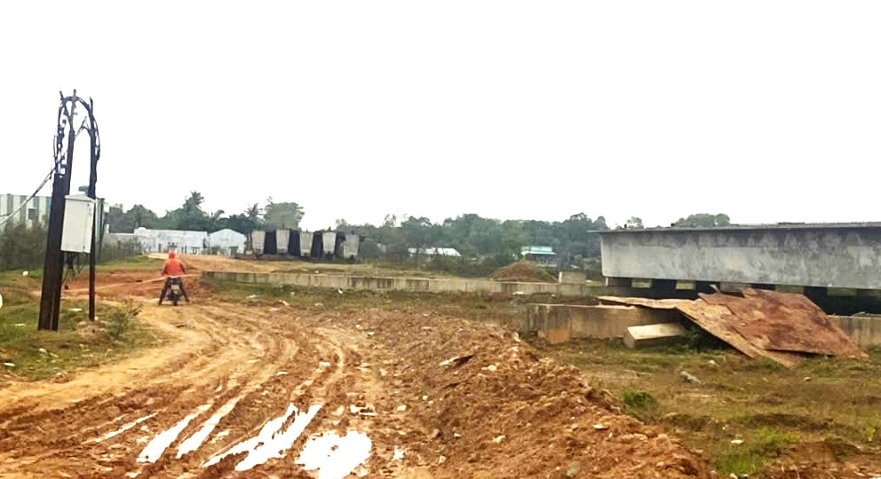 Công trình ngổn ngang các hạng mục trần ai trong mưa nắng. Ảnh: TG