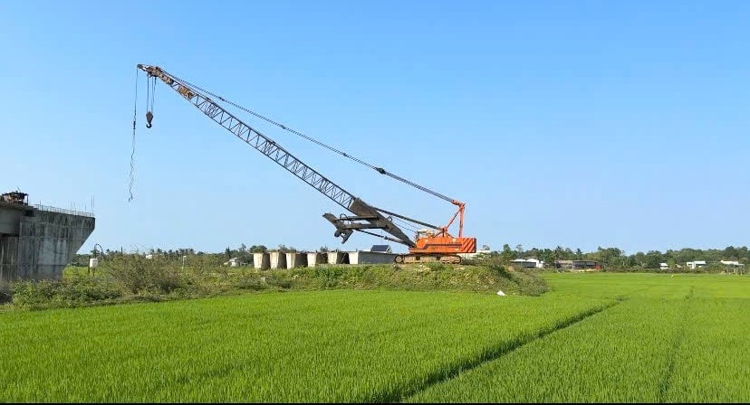 Thời điểm này vẫn còn nhiều thửa đất chưa thu hồi, bồi thường, vướng mặt bằng thi công. Ảnh: TG.