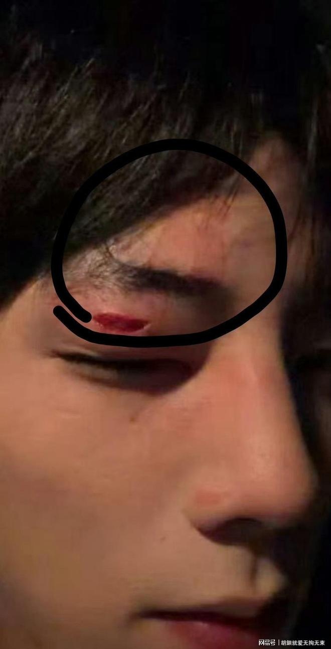 Khuôn mặt của Vương Niên Tương Thành sau khi bị bạn diễn đấm. Ảnh: Weibo.