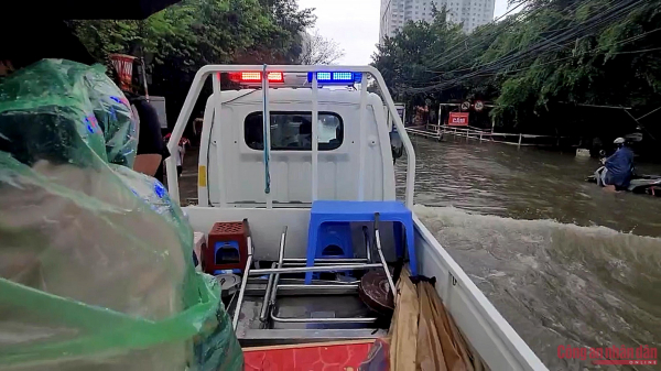 Trao đổi với PV Báo CAND, Trung tá Vương Đăng Cường, Đội trưởng Đội CSGT số 7 cho biết, đơn vị thường xuyên kiểm tra, túc trực tại các điểm xung yếu để kịp thời xử lý tình huống và hỗ trợ nhân dân phòng ngừa rủi ro trong mưa bão. Hiện, lực lượng CSGT tiếp tục ứng trực tại các điểm ngập trọng yếu, đồng thời khuyến cáo người dân hạn chế đi vào khu vực ngập sâu, tuân thủ hướng dẫn của lực lượng chức năng để bảo đảm an toàn giao thông. Trong ảnh, tổ công tác của Đội CSGT số 7 cùng với Công an phường Kiến Hưng hỗ trợ người dân đẩy xe ô tô bị chết máy ra khỏi điểm ngập.