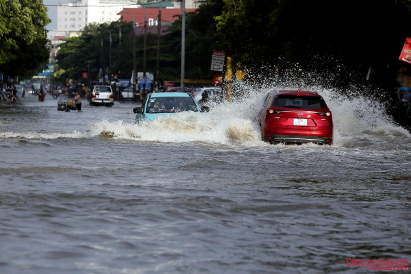 PV Báo CAND tiếp tục ghi nhận tại tuyến đường Nguyễn Chí Thanh, tình trạng ngập sâu vẫn diễn ra, gây khó khăn cho các phương tiện di chuyển theo hướng từ Liễu Giai đi Đê La Thành. Nhiều ô tô bị chết máy khi cố vượt điểm ngập.