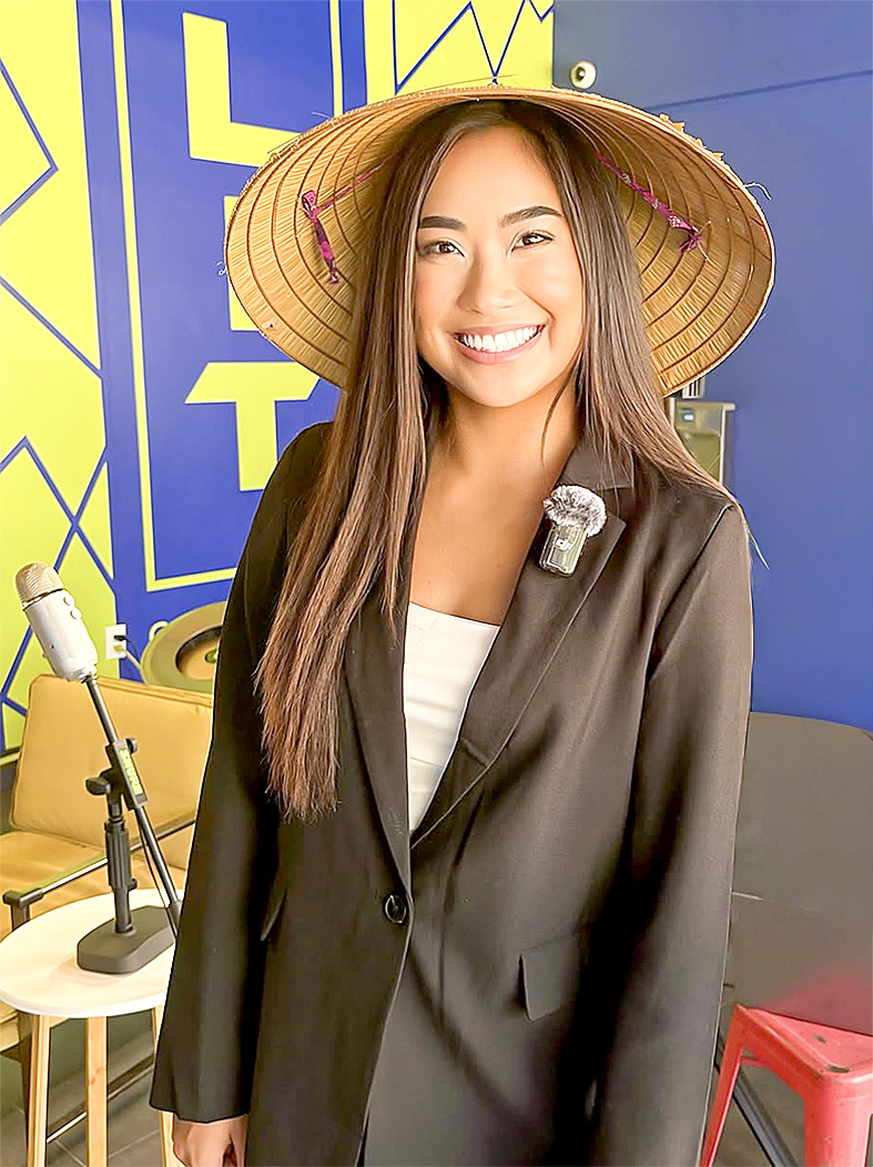 Sarah Elizabeth Segrest thích thú với chiếc nón lá