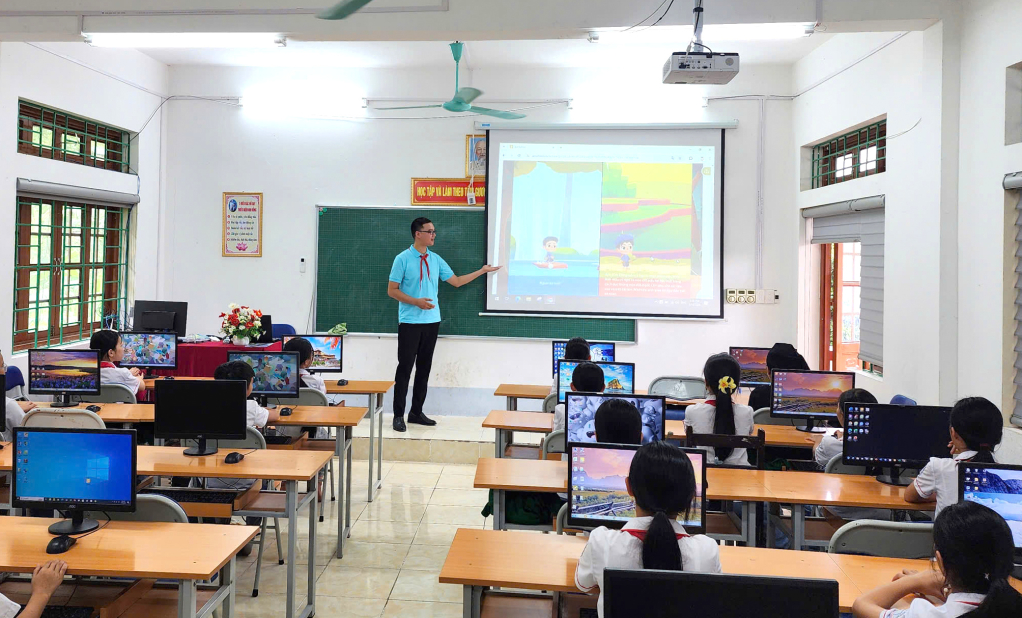 Trường tiểu học Xuân Hòa, xã Trường Hà đẩy mạnh ứng dụng công nghệ thông tin trong dạy và học.