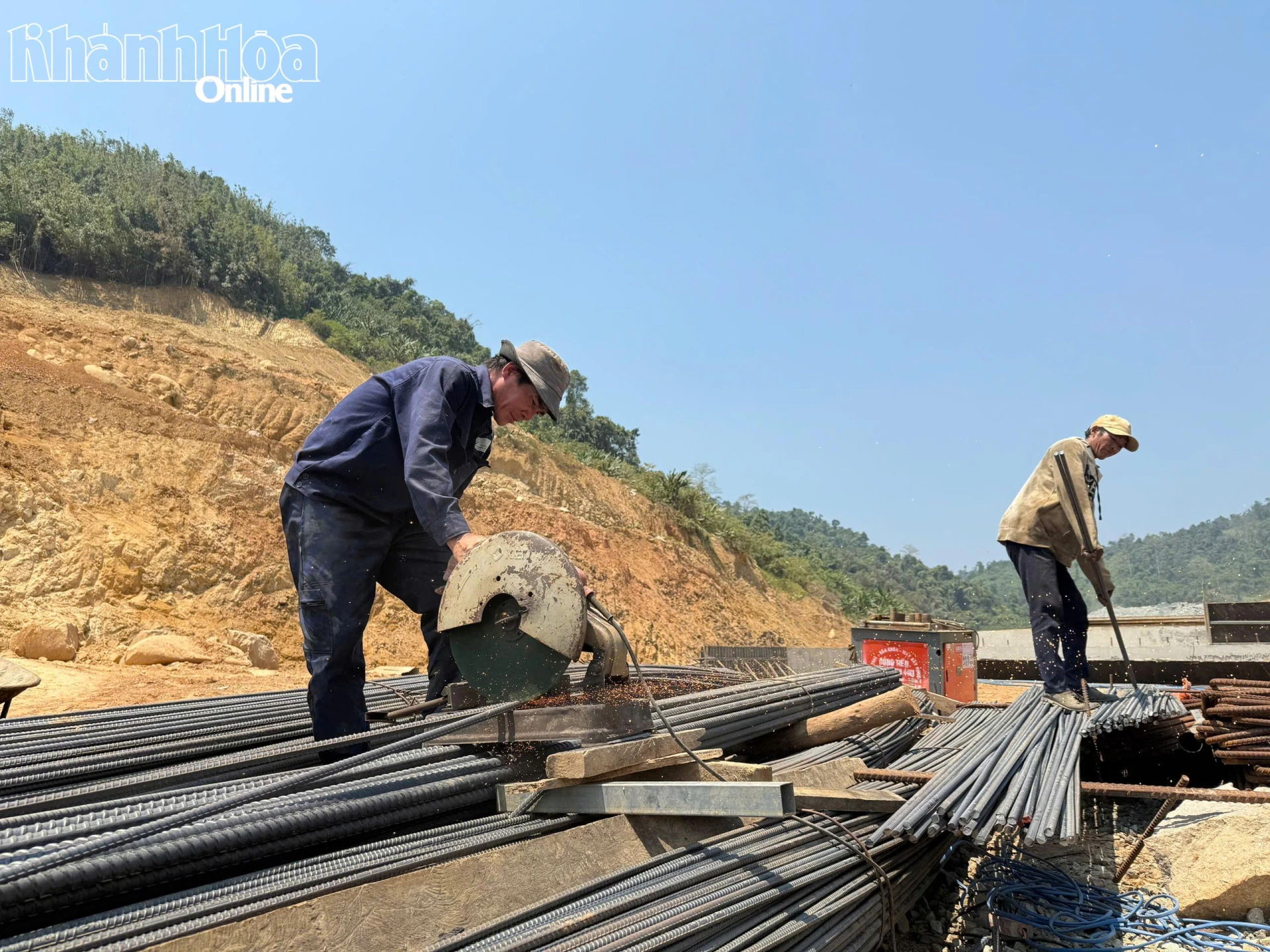 Dưới cái nắng gay gắt của những ngày đầu tháng 4, hàng trăm kỹ sư, công nhân vẫn miệt mài thi công trên công trường Dự án Đường bộ cao tốc Khánh Hòa - Buôn Ma Thuột.