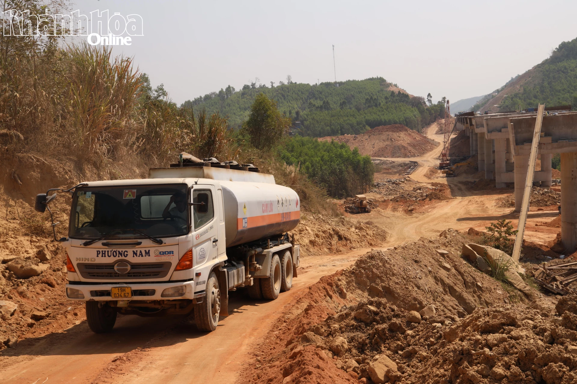 Xe chở dầu vẫn miệt mài vận chuyển phục vụ công trình.
