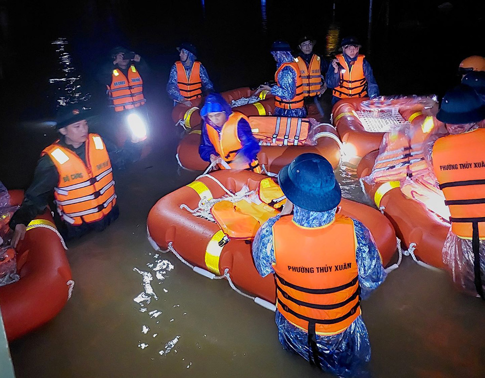 Trao đổi với chúng tôi, Đại tá Phan Thắng, Chỉ huy trưởng Bộ CHQS TP Huế cho biết: Những ngày qua, Bộ CHQS TP Huế đã điều động gần 6.000 lượt cán bộ, chiến sĩ cùng 524 lượt phương tiện, khẩn cấp ứng cứu, sơ tán được 1.927 hộ với gần 7.000 nhân khẩu và hơn 500 khách nước ngoài. Thời gian tới, các cơ quan, đơn vị tiếp tục tổ chức lực lượng, phương tiện triển khai công tác cứu hộ, hỗ trợ nhu yếu phẩm đến từng người dân, đồng thời sẵn sàng triển khai khắc phục thiệt hại, góp phần giúp nhân dân ổn định cuộc sống và khôi phục sản xuất sau mưa lũ.