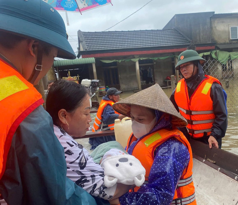Thực hiện chỉ đạo của Bộ CHQS TP Huế, ngày 28-10, các cơ quan, đơn vị trực thuộc đã điều động tối đa quân số, phương tiện triển khai công tác cứu hộ, giúp đỡ người dân ứng phó với mưa lũ. Khoảng 12 giờ, lực lượng dân quân phường Hương Thủy đã dùng thuyền vận chuyển một phụ nữ và một trẻ sơ sinh bị sốt cao tại xóm Dừa, tổ dân phố Hòa Phong đến Trạm Y tế phường Hương Thủy để điều trị. Khi nhận được thông tin cầu cứu khẩn cấp, tổ cứu hộ của Ban CHQS phường Kim Long đã vượt qua dòng lũ xiết, kịp thời đưa một công dân người Việt, quốc tịch Mỹ bị hen suyễn nặng đến bệnh viện cấp cứu...