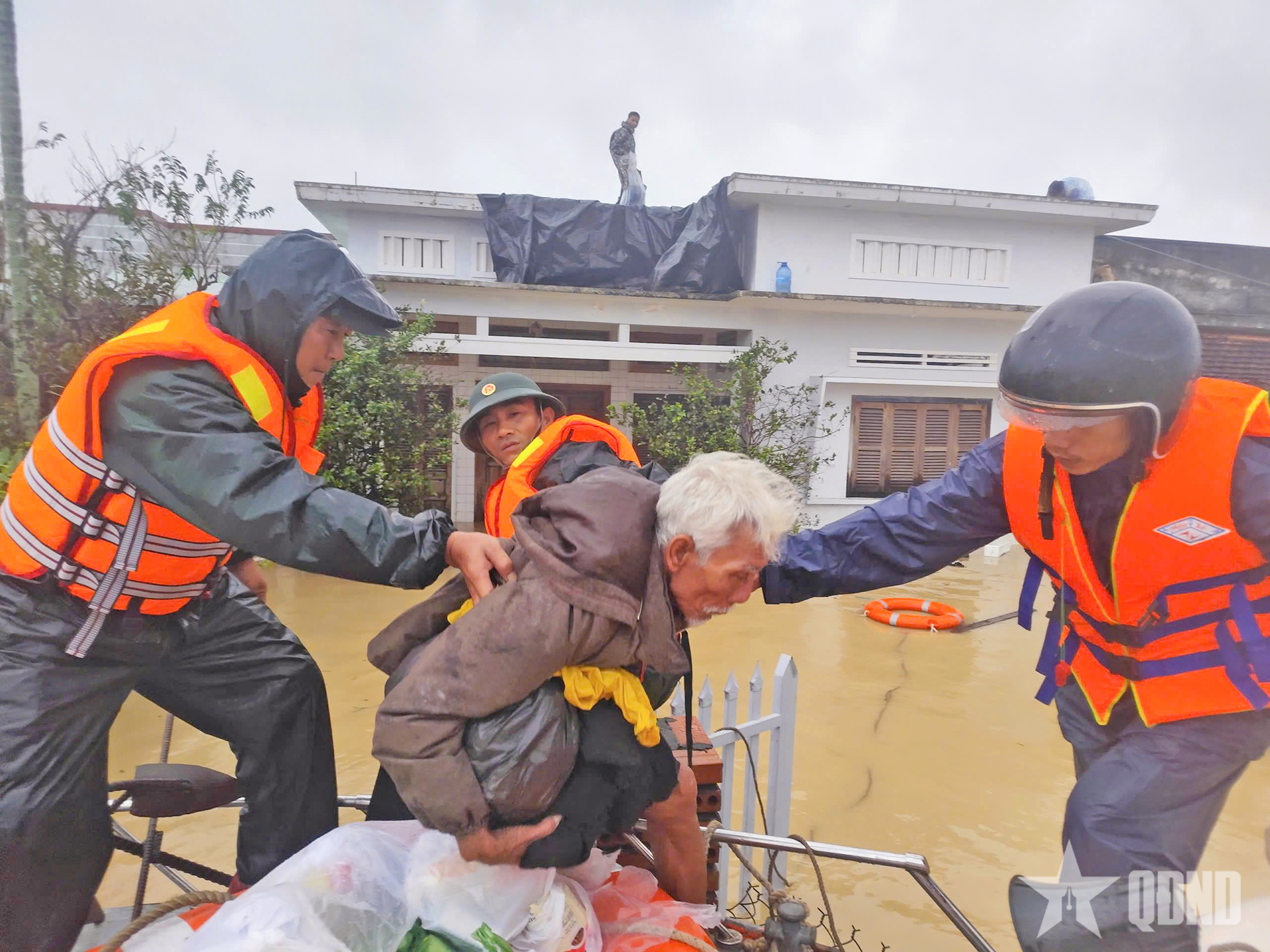 Ông Hồ Văn Trí nhớ lại khoảnh khắc được cán bộ, chiến sĩ Ban chỉ huy phòng thủ khu vực 1 - Hoài Nhơn Nam ứng cứu. Ông Trí cho biết, lúc đầu gia đình ông và hàng xóm nghĩ, nhà ông là nơi trú ẩn an toàn rồi, nhưng không ngờ nước lũ dâng lên quá nhanh, không ai kịp làm gì cả. Nếu không có các anh bộ đội mang ca nô đến ứng cứu thì không biết chuyện gì sẽ xảy ra.