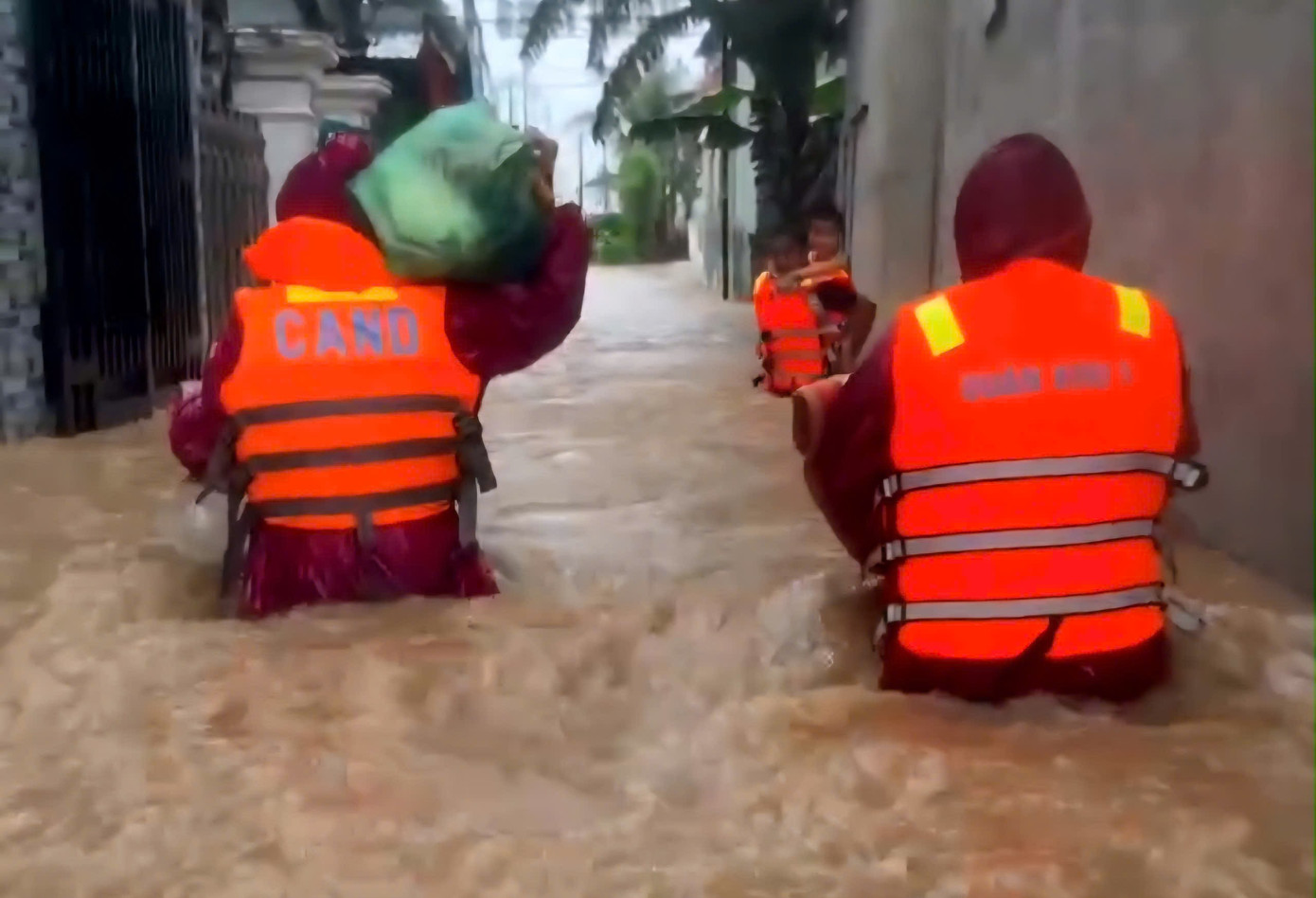Theo đó đơn vị điều động ca nô trực tiếp tiếp cận khu vực nhà chị O, tuy nhiên do đường vào hẹp và nước chảy xiết, phương tiện không thể tiến sâu. Các cán bộ, chiến sĩ buộc phải lội qua dòng nước lũ, cõng hai mẹ con chị O. ra ngoài an toàn rồi đưa đến bệnh viện kiểm tra sức khỏe.