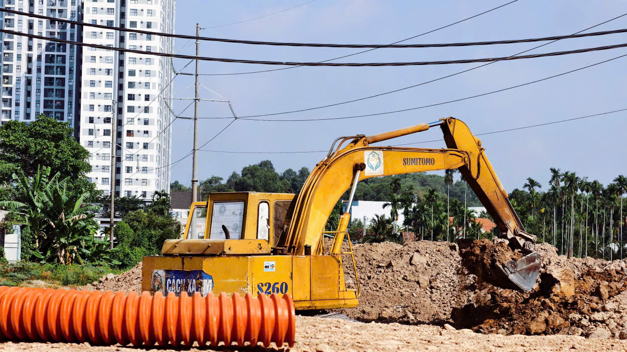 Công nhân thi công tại công trường đường Vành Đai 3, đoạn thuộc địa phận phường Phú Lợi. Ảnh: TÂM TRANG