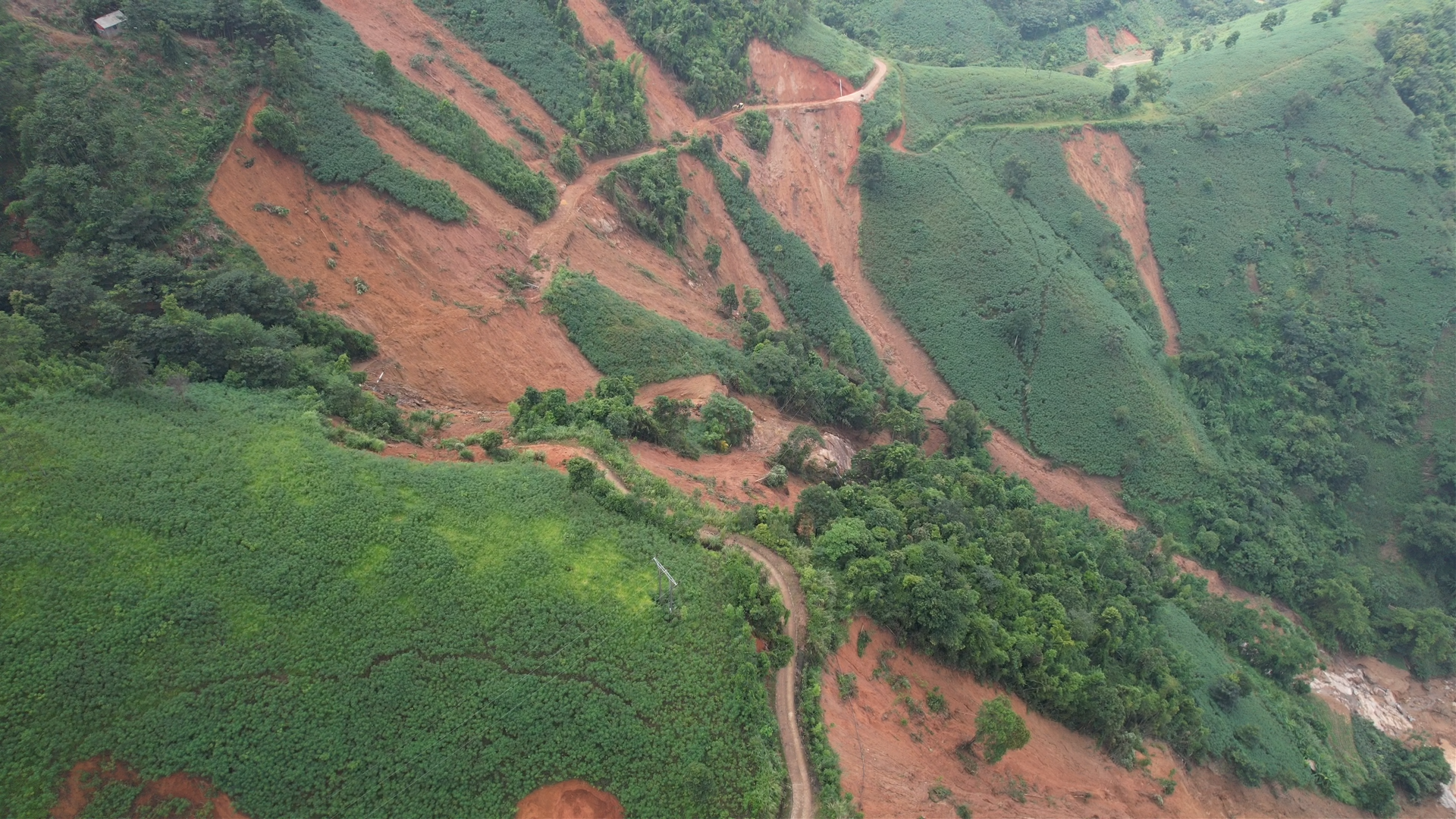 Tuyến đường lên thôn Nậm Miện bị sạt lở nghiêm trọng do ảnh hưởng hoàn lưu bão số 10.