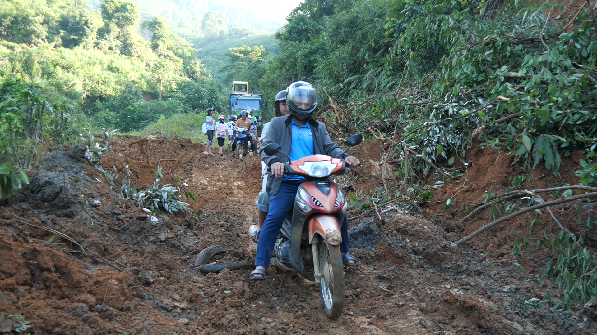 Sau hoàn lưu bão số 10, thôn Nậm Miện, xã Dương Quỳ đã bị cô lập hoàn toàn. Tuyến đường độc đạo nối thôn với trung tâm xã xuất hiện hàng chục điểm sạt lở lớn nhỏ đầy nguy hiểm. Để đến được trường, những đứa trẻ nơi đây không còn cách nào khác ngoài việc phải cuốc bộ trên quãng đường dài 8 km, băng qua những đoạn trơn trượt, lởm chởm đất đá, bùn lầy, nơi những vách núi có thể đổ ập xuống bất cứ lúc nào.