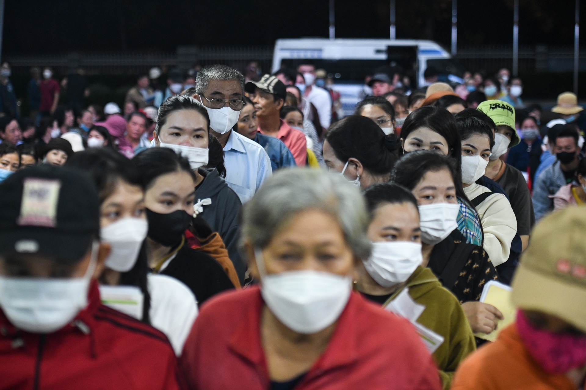 Hàng trăm người bệnh đến Bệnh viện Ung bướu TP.HCM từ tờ mờ sáng để xếp hàng lấy số khám bệnh. Ảnh: Duy Hiệu.