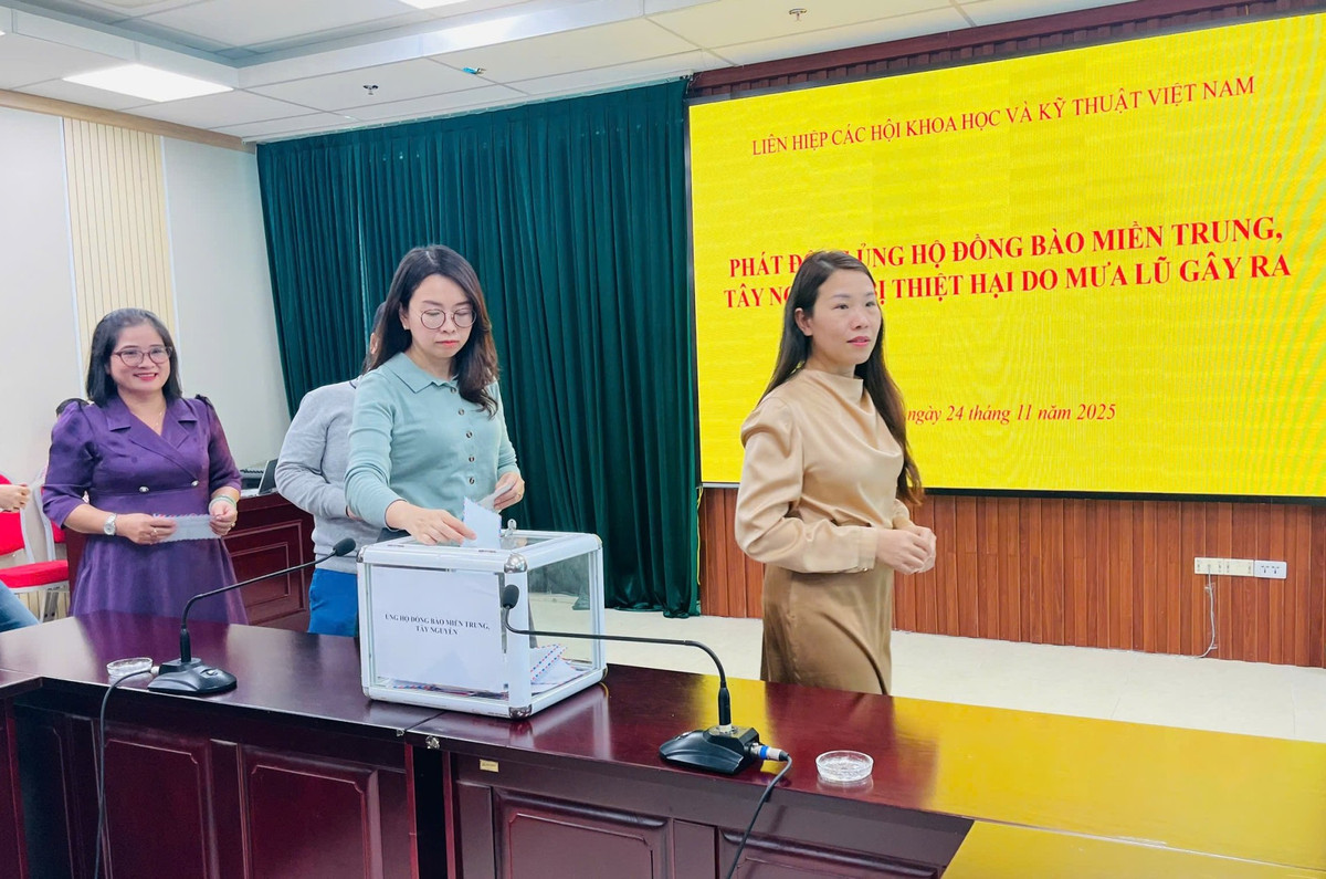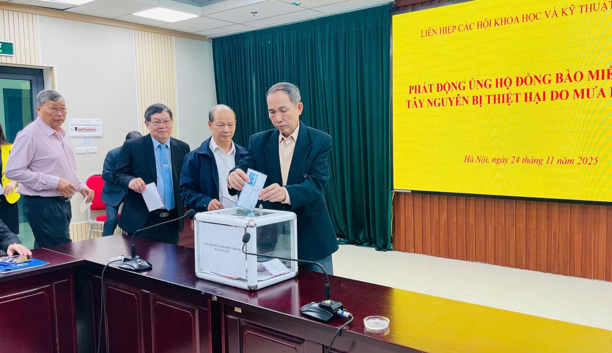 Chiều ngày 24/11/2025, Đoàn Chủ tịch Liên hiệp các Hội Khoa học và Kỹ thuật Việt Nam (VUSTA) đã phát động ủng hộ đồng bào vùng lũ, kêu gọi các hội thành viên, tổ chức trực thuộc và toàn thể cán bộ, công chức, người lao động chung tay sẻ chia khó khăn với người dân đang hứng chịu thiệt hại nặng nề do mưa lũ gây ra