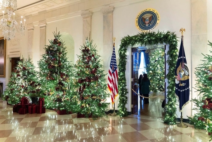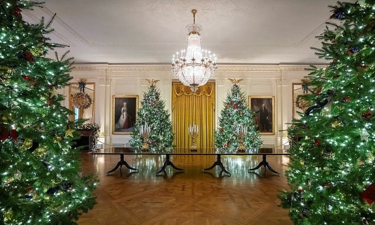 Không gian lễ hội được thực hiện bởi 150 tình nguyện viên với hơn 50 cây thông, 7.600 m ruy băng và 10.000 cánh bướm trang trí. Điểm nhấn đầu tiên là Phòng Đông (East Room), nơi du khách có thể chiêm ngưỡng sự kết hợp giữa nét cổ điển và không khí hội hè.