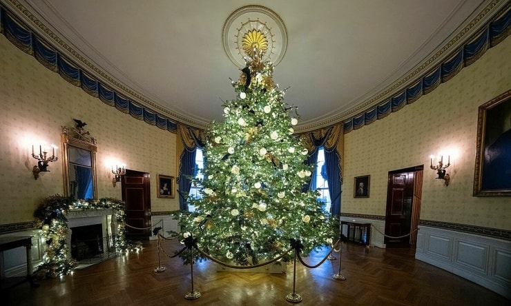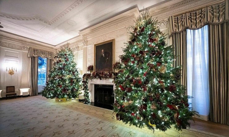 Tại Phòng Xanh (Blue Room), cây thông Giáng sinh chính thức của Nhà Trắng cao lớn được đặt trang trọng ở vị trí trung tâm. Đây là giống thông trắng từ trang trại Korson's Tree Farms, bang Michigan, được trang trí nhằm tưởng nhớ các gia đình Gold Star và biểu trưng cho các vùng lãnh thổ của Mỹ.