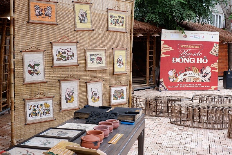 Bước vào không gian workshop, hơn 30 vị khách tham dự có thể dễ dàng cảm nhận sắc thái văn hóa đặc trưng của làng tranh Kinh Bắc. Các tác phẩm tiêu biểu như Lợn đàn âm dương, Đám cưới chuột, Vinh hoa - Phú quý được điểm xuyết tại từng gian trưng bày, tạo nên những mảng sắc dân gian mộc mạc, đồng thời tôn lên tinh thần đặc trưng của tranh Đông Hồ. Sắc màu từ giấy điệp, sỏi son, lá chàm, hoa hòe hòa quyện cùng cảnh quan di tích Hồ Văn đã hình thành một không gian nghệ thuật vừa gần gũi vừa trang trọng, dẫn dắt người xem bước vào hành trình khám phá giá trị thẩm mỹ và chiều sâu văn hóa của dòng tranh hàng trăm năm tuổi.