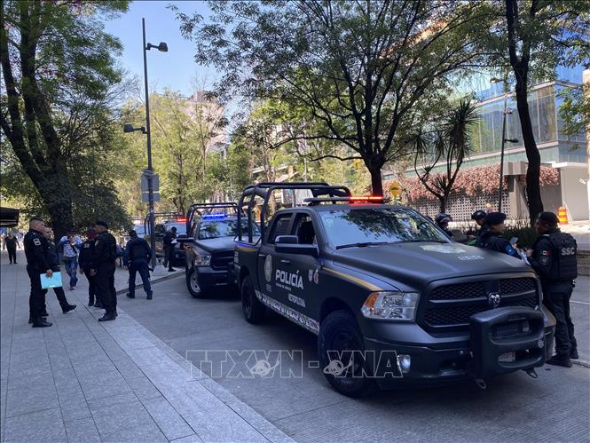 Các phương tiện của lực lượng an ninh được bố trí tại nhiều tuyến đường ở Mexico City để tăng cường kiểm soát tình hình. Ảnh tư liệu: Phương Lan/TTXVN
