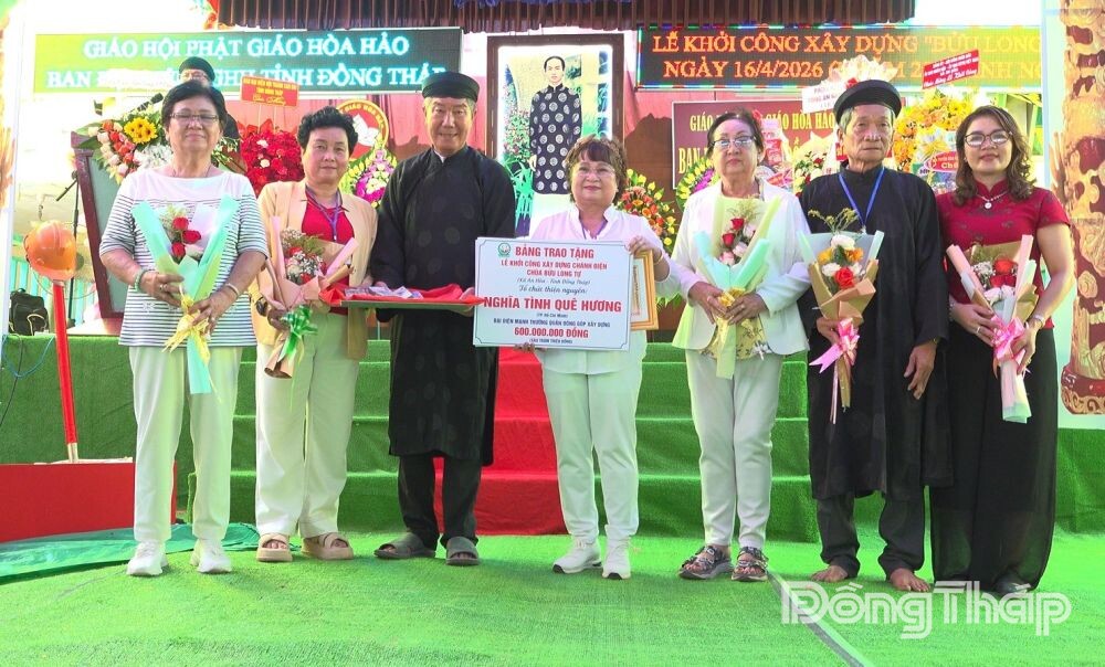 Các tổ chức, mạnh thường quân trao bảng tượng trưng ủng hộ kinh phí xây dựng chùa Bửu Long.