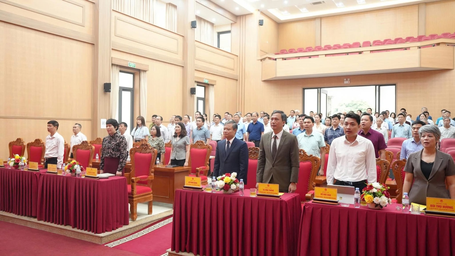 Các đại biểu tham dự hội nghị thực hiện nghi thức chào cờ. Ảnh: AK