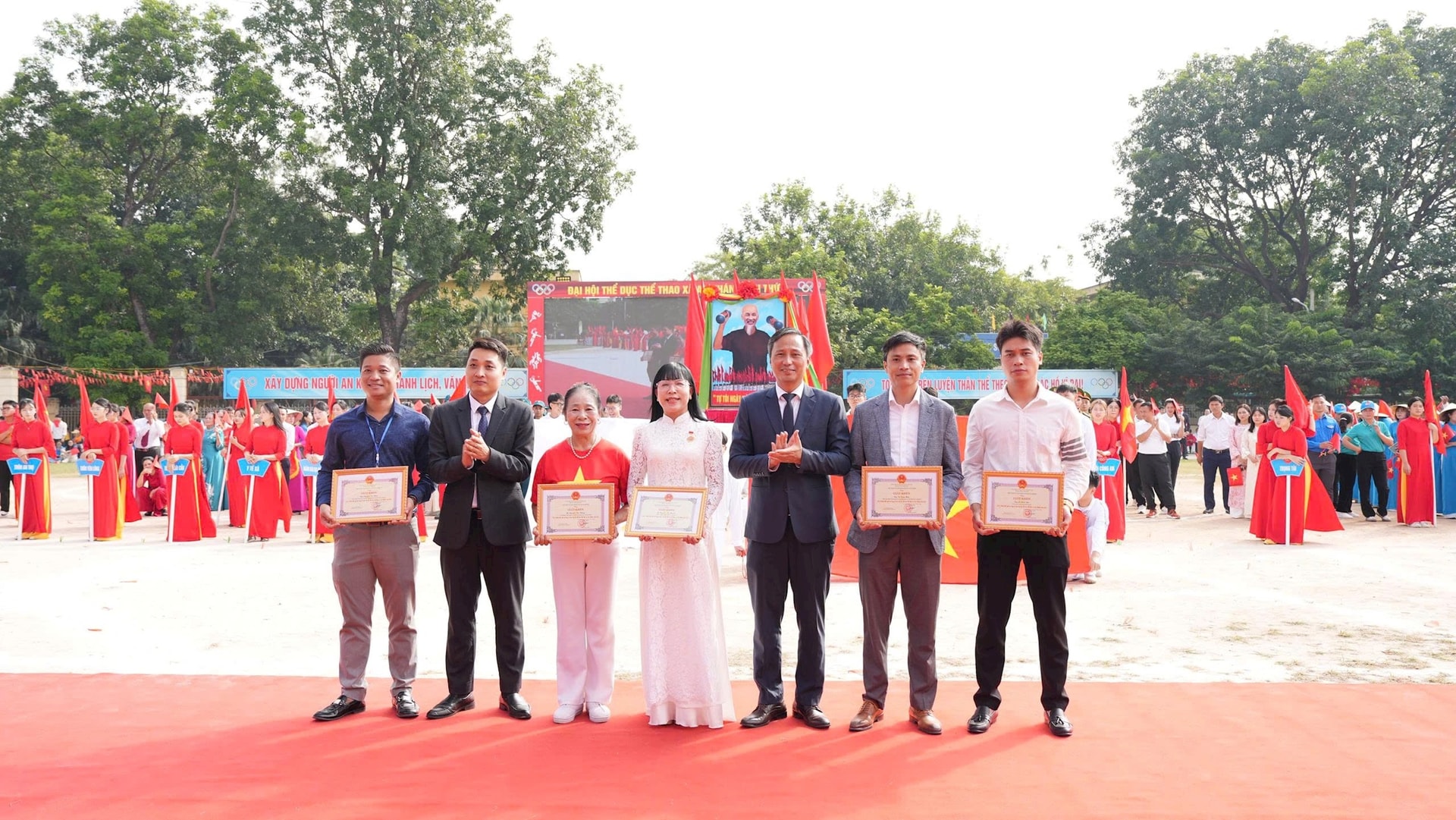 Lãnh đạo xã An Khánh trao khen thưởng cho các đơn vị đạt thành tích trong thực hiện Đại hội. Ảnh: Ánh Dương
