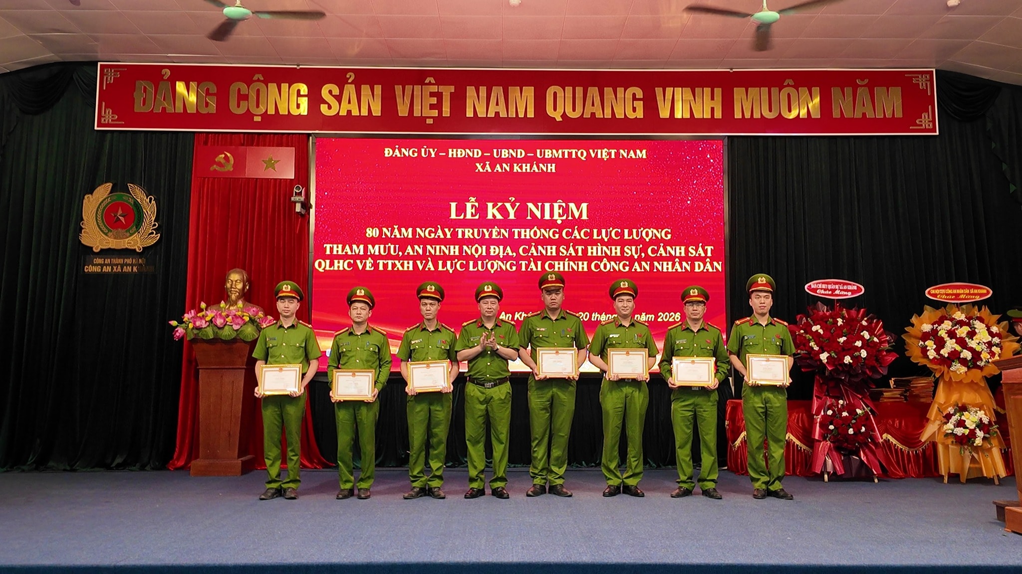 Tại buổi lễ cũng tổ chức biểu dương, khen thưởng tập thể Công an xã An Khánh và 76 cá nhân đã hoàn thành xuất sắc nhiệm vụ trong đợt cao điểm tấn công, trấn áp tội phạm, bảo đảm ANTT Tết Nguyên đán; bảo vệ tuyệt đối an toàn Đại hội Đảng toàn quốc và cuộc bầu cử HĐND các cấp. Các đồng chí được trao tặng Bằng khen của Chủ tịch UBND thành phố, lãnh đạo Công an thành phố và Chủ tịch UBND xã.