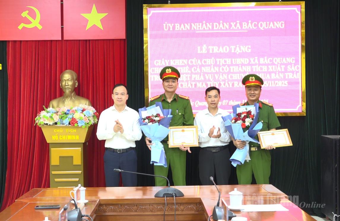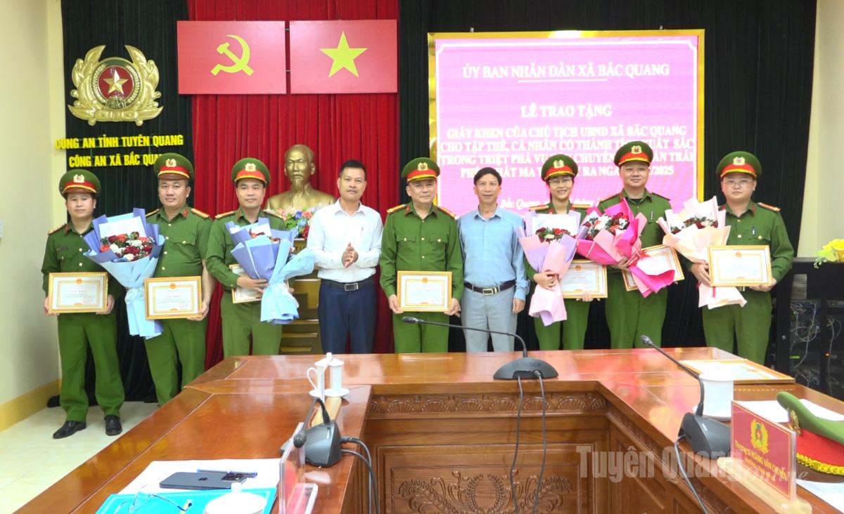 Với tinh thần trên, Chủ tịch UBND xã Bắc Quang đã Quyết định khen thưởng đột xuất cho 2 tập thể và 9 cá nhân có thành tích trong công tác phòng, chống ma túy trên địa bàn.