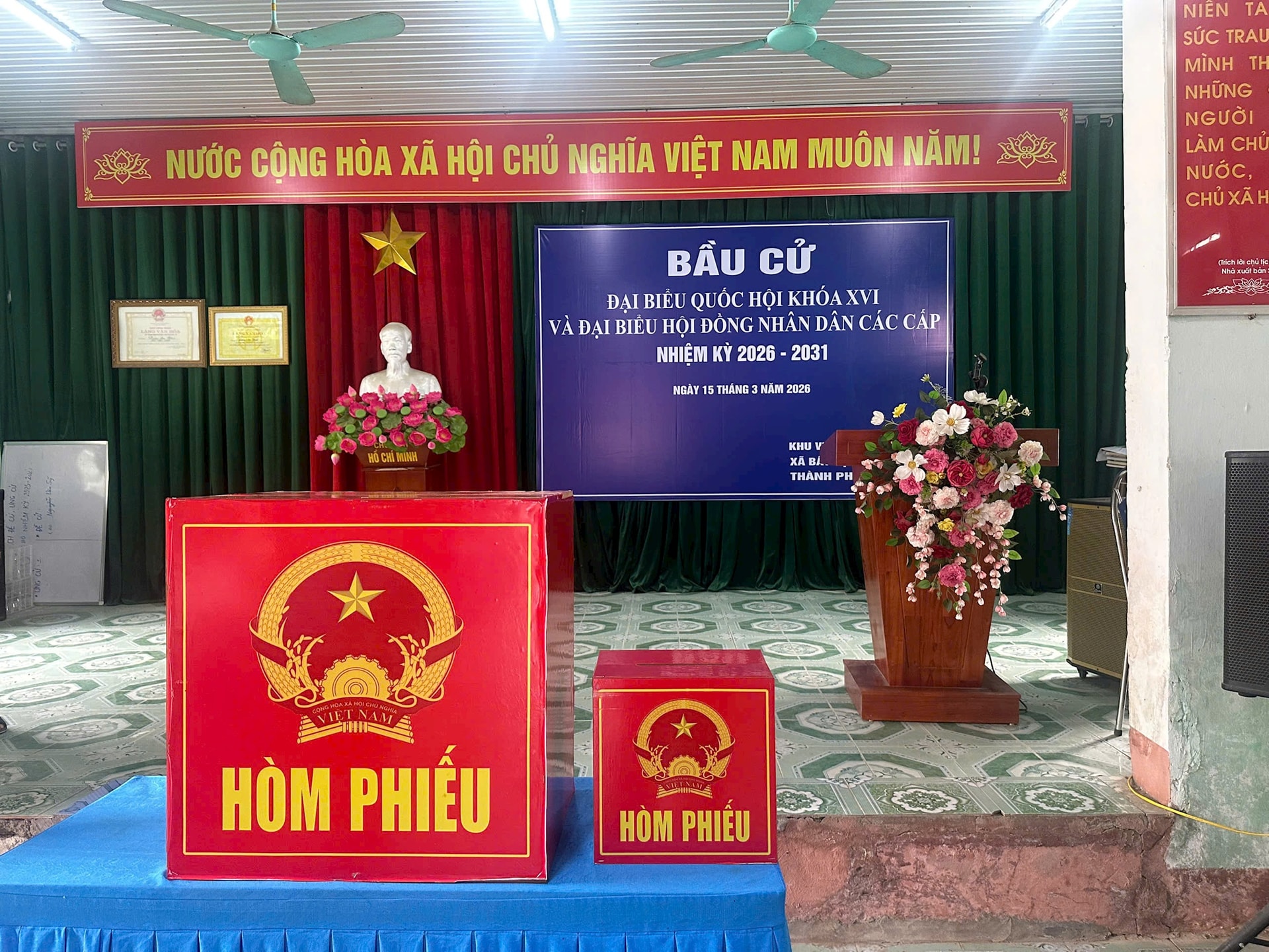Các khu vực bỏ phiếu đã cơ bản hoàn thành công tác chuẩn bị. Ảnh: Xuân Hải