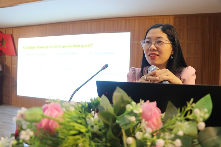 Trực tiếp truyền đạt nội dung, Tiến sĩ Nguyễn Thị Thu Hà, giảng viên Trường Cao đẳng Cơ điện Hà Nội nhấn mạnh việc tổ chức đại hội hợp tác xã là yêu cầu bắt buộc theo quy định của pháp luật, trong đó đại hội thường niên phải được tổ chức đầy đủ hằng năm, đúng thời gian, đúng trình tự, thủ tục.