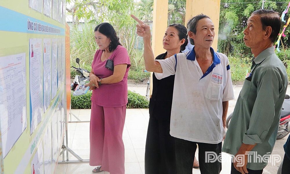 Người dân xã Bình Hàng Trung xem danh sách và tiểu sử những người ứng cử Đại biểu Quốc hội khóa XVI và Đại biểu HĐND các cấp nhiệm kỳ 2026 - 2031 được niêm yết tại khu vực bỏ phiếu.