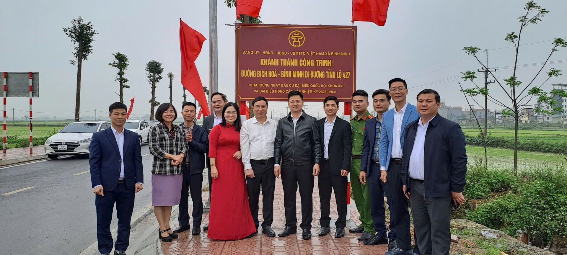 Các đại biểu tại lễ khánh thành tuyến đường Bích Hòa – Bình Minh đi Tỉnh lộ 427. Ảnh: Thành Đạt