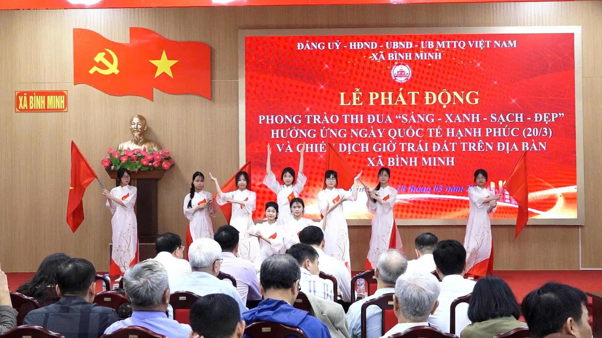Tiết mục văn nghệ tại lễ phát động Phong trào thi đua “sáng - xanh - sạch - đẹp” hưởng ứng Ngày quốc tế hạnh phúc 20-3 và chiến dịch Giờ trái đất.