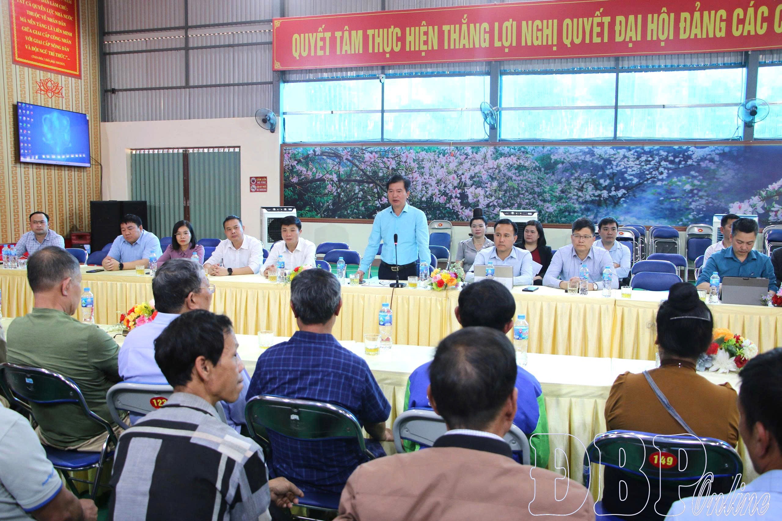 Bí thư Đảng ủy, Chủ tịch HĐND xã Búng Lao, Tạ Mạnh Cường thông tin tình hình kinh tế - xã hội, quốc phòng - an ninh của địa phương tại buổi gặp mặt.
