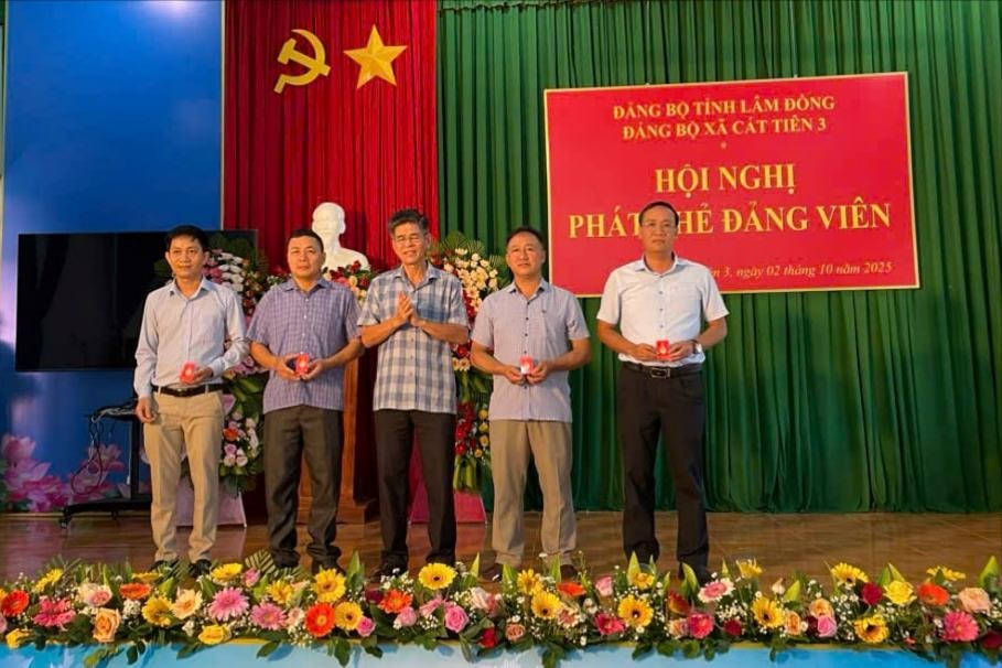 Nhờ triển khai quyết liệt và đồng bộ, trong ngày 2/10, Đảng bộ xã Cát Tiên 3 đã hoàn thành việc phát 441/441 thẻ đảng viên đợt 1, đạt 100%.