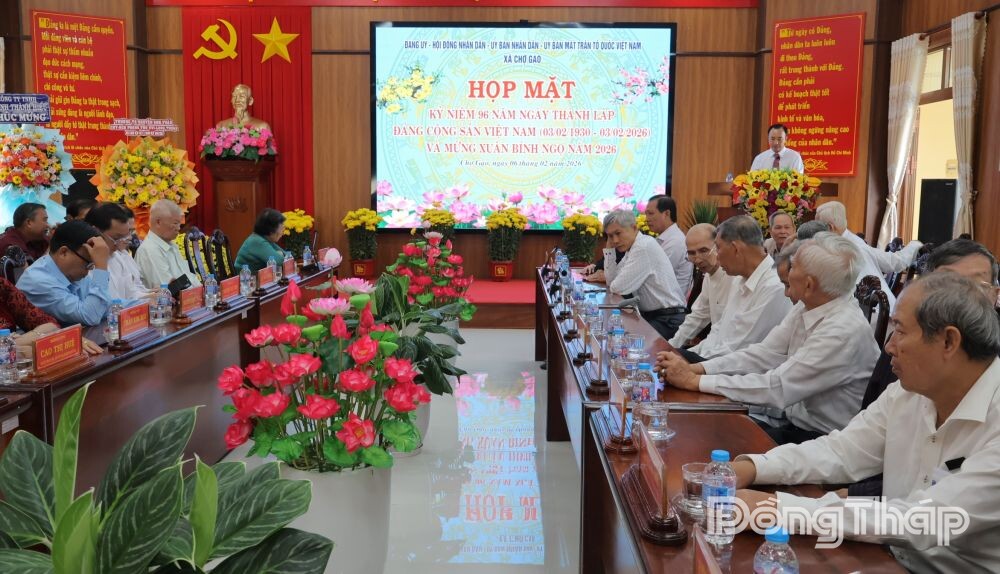 Tại buổi họp mặt, đại biểu ôn lại truyền thống lịch sử vẻ vang của Đảng Cộng sản Việt Nam qua 96 năm và mừng Xuân Bính Ngọ 2026, xem trình chiếu Video clip về những kết quả nổi bật xã Chợ Gạo đạt được trên các lĩnh vực xây dựng Đảng, kinh tế - xã hội, quốc phòng, an ninh trong năm 2025.