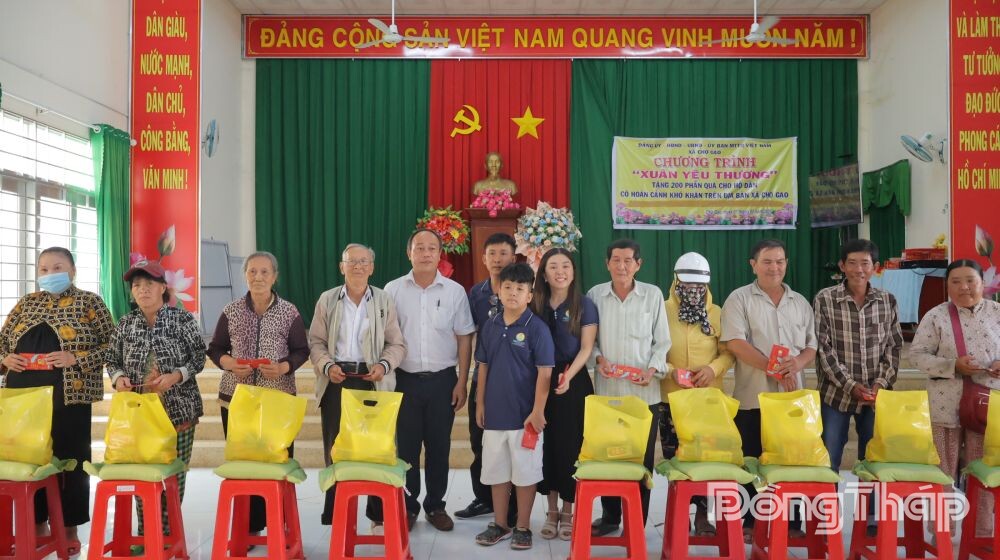 Tại chương trình, các đơn vị, nhà hảo tâm đã trao tặng gần 500 phần quà cho hộ nghèo, hộ có hoàn cảnh khó khăn của xã, trong đó Công ty TNHH Xuất nhập khẩu Hải sản Hải Đăng tặng 200 phần; chùa Hưng Long (xã An Thạnh Thủy) trao tặng 200 phần; Ngân hàng BIDV chi nhánh Chợ Gạo tặng 20 phần; Công ty Thabico tặng 50 phần.