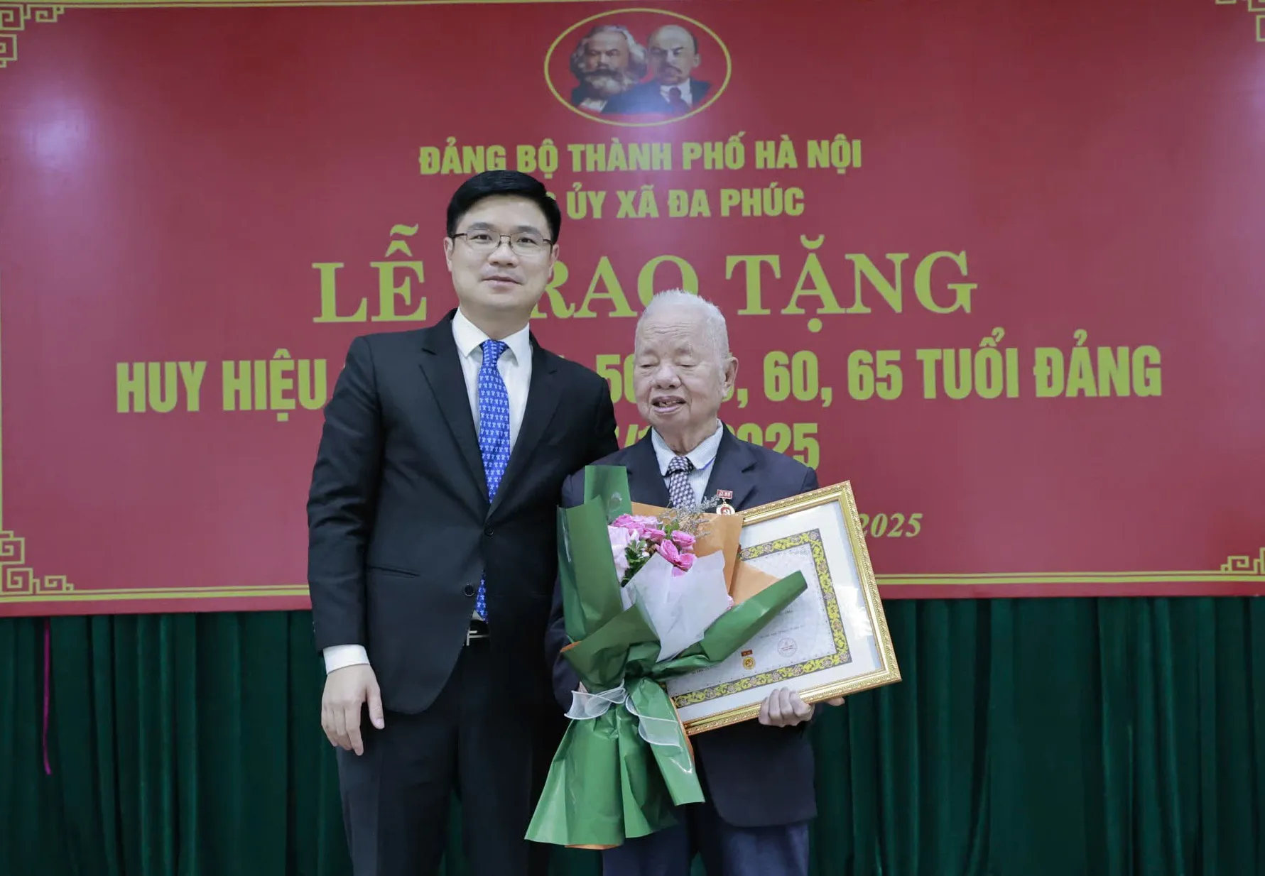 Theo Quyết định số 78-QĐ/TU ngày 24/10/2025 của Thành ủy Hà Nội, Đảng bộ xã Đa Phúc có 36 đảng viên vinh dự được trao tặng Huy hiệu 65 năm, 60 năm, 55 năm, 50 năm, 45 năm, 40 năm và 30 năm tuổi Đảng.