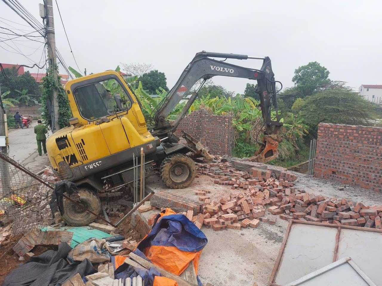 Cơ quan chức năng xã Đa Phúc xử lý công trình vi phạm tại thôn Lai Cách. Ảnh: TT
