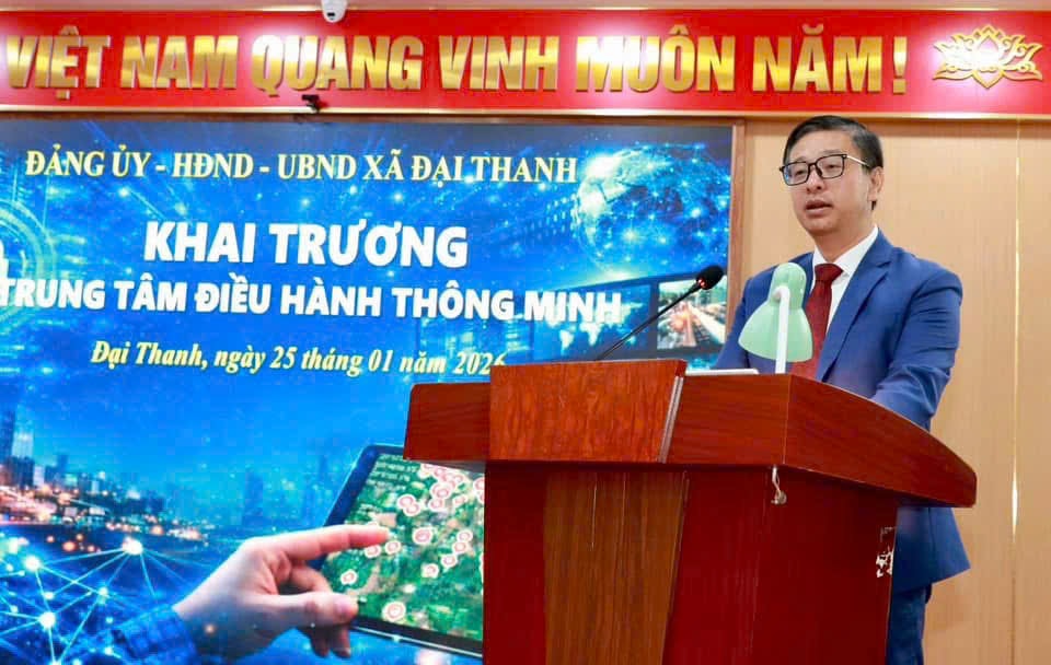 Phát biểu tại buổi lễ, Chủ tịch UBND xã Đại Thanh Nguyễn Văn Hưng nhấn mạnh, việc đưa Trung tâm điều hành thông minh vào vận hành là bước cụ thể hóa kịp thời, thiết thực Nghị quyết số 57-NQ/TW ngày 22-12-2024 của Bộ Chính trị về đột phá phát triển khoa học, công nghệ, đổi mới sáng tạo và chuyển đổi số quốc gia.