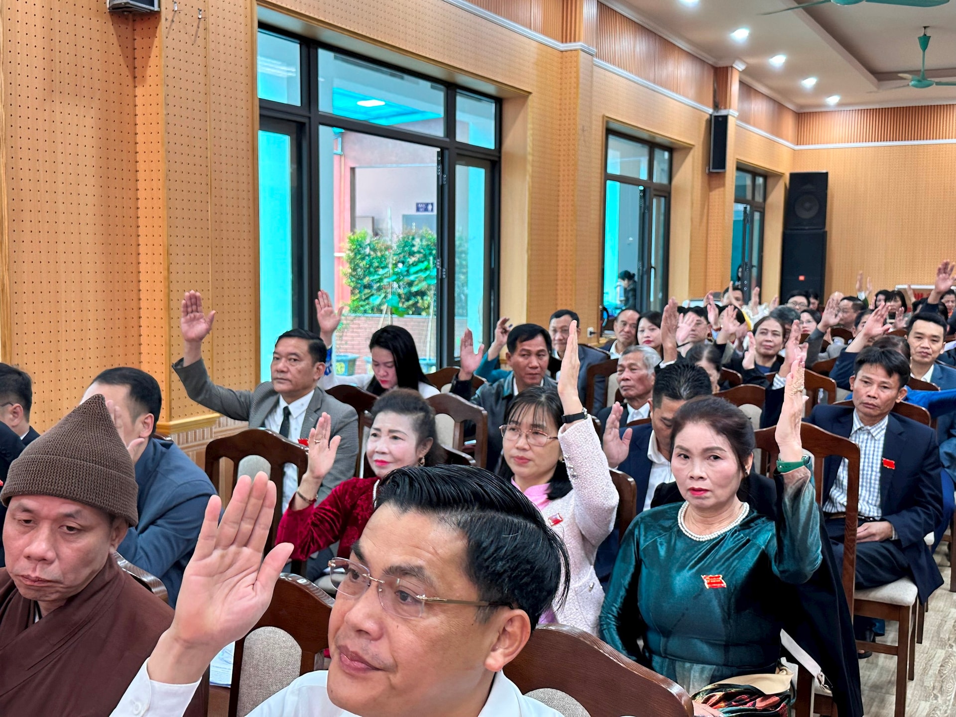 Các đại biểu biểu quyết tán thành các nghị quyết tại kỳ họp. Ảnh: Mai Duyên