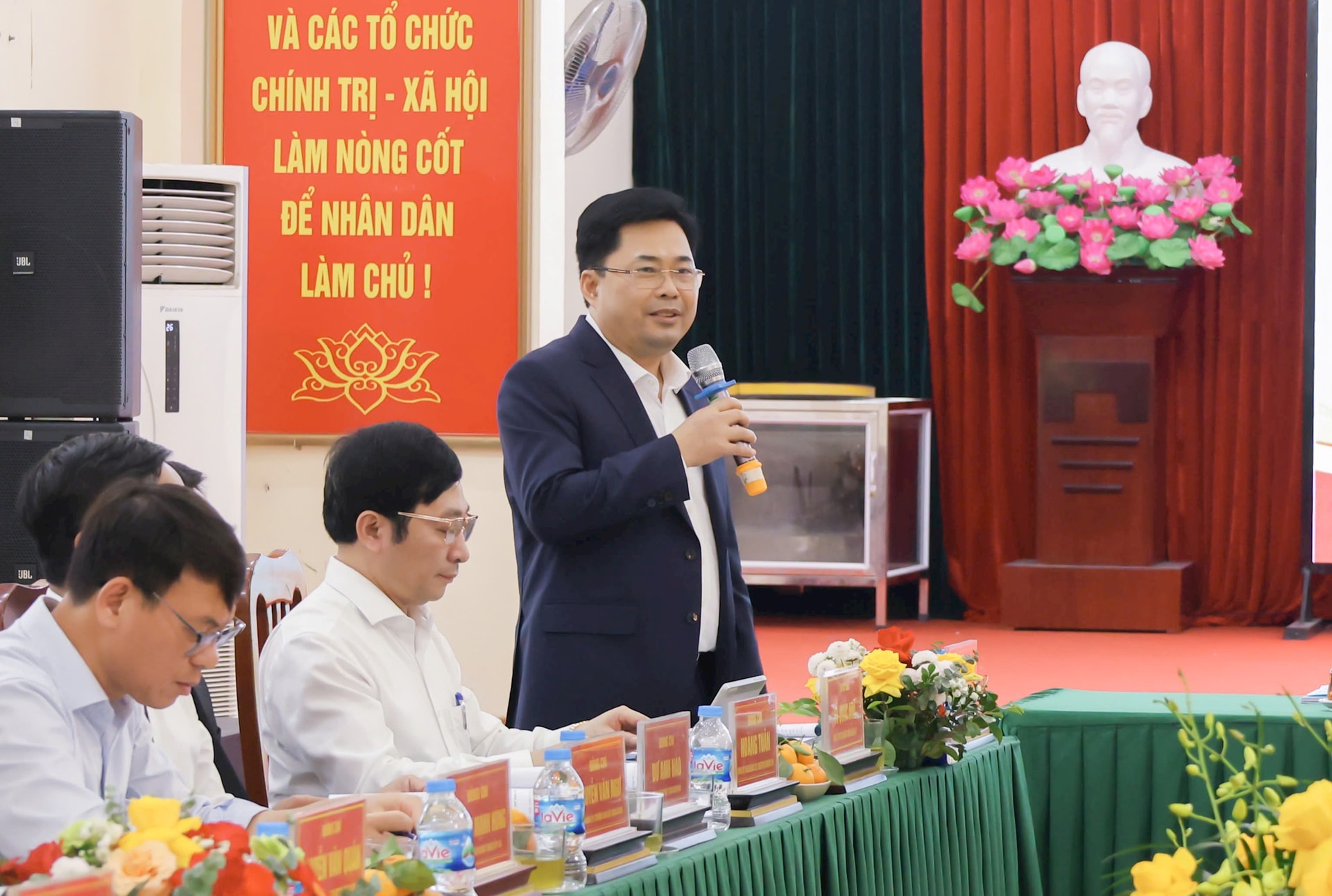 Bí thư Đảng ủy xã Đại Xuyên Nguyễn Mạnh Huy phát biểu tại hội nghị. Ảnh: Sơn Tùng