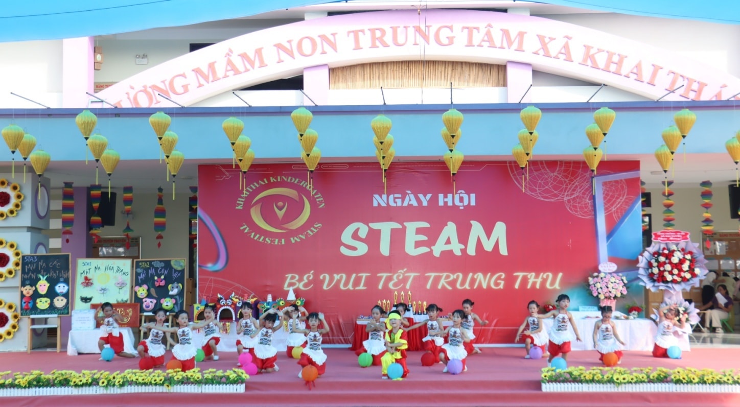 Ngày hội Trung thu tại Trường Mầm non Khai Thái không chỉ dừng lại ở niềm vui tuổi thơ, mà còn là hoạt động giáo dục ý nghĩa, nuôi dưỡng tâm hồn trẻ nhỏ, khơi dậy ước mơ, niềm đam mê sáng tạo và tình yêu văn hóa truyền thống.