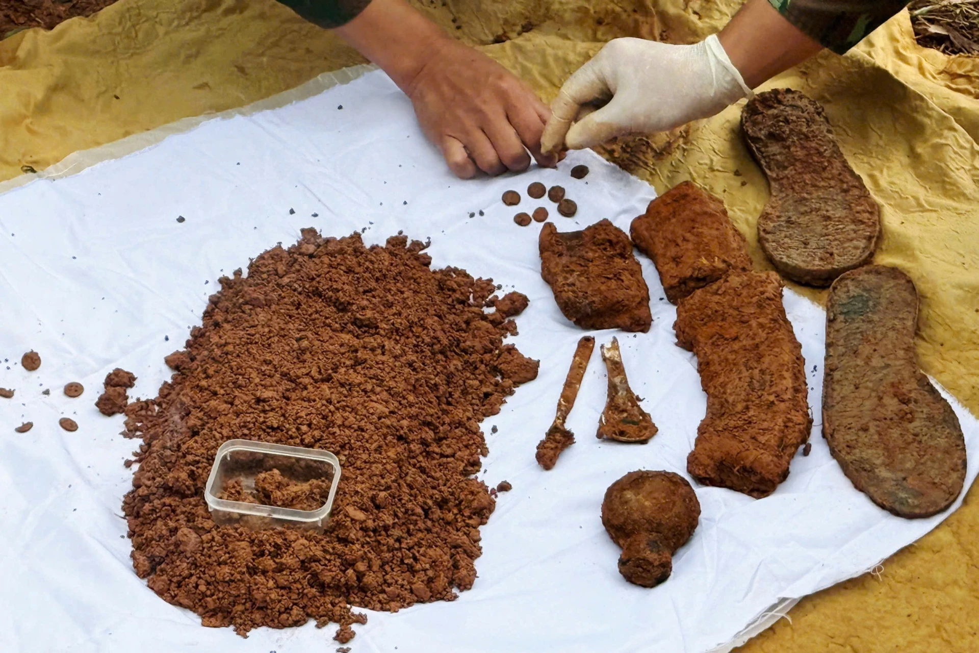 Các di vật được tìm thấy cùng hài cốt liệt sĩ - Ảnh: K.S
