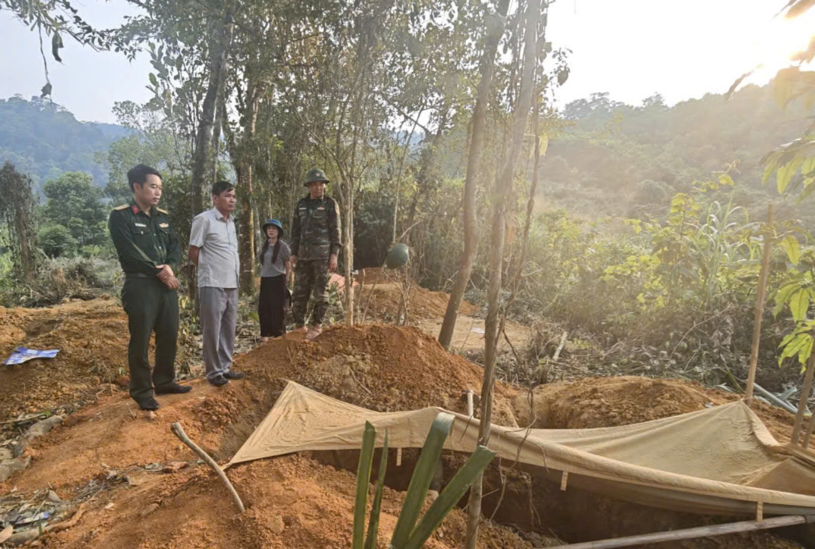 Lãnh đạo xã Đakrong cùng cán bộ Đội Quy tập hài cốt liệt sĩ 584 khảo sát thực tế tại khu vực vừa phát hiện và quy tập hài cốt liệt sĩ - Ảnh: K.S
