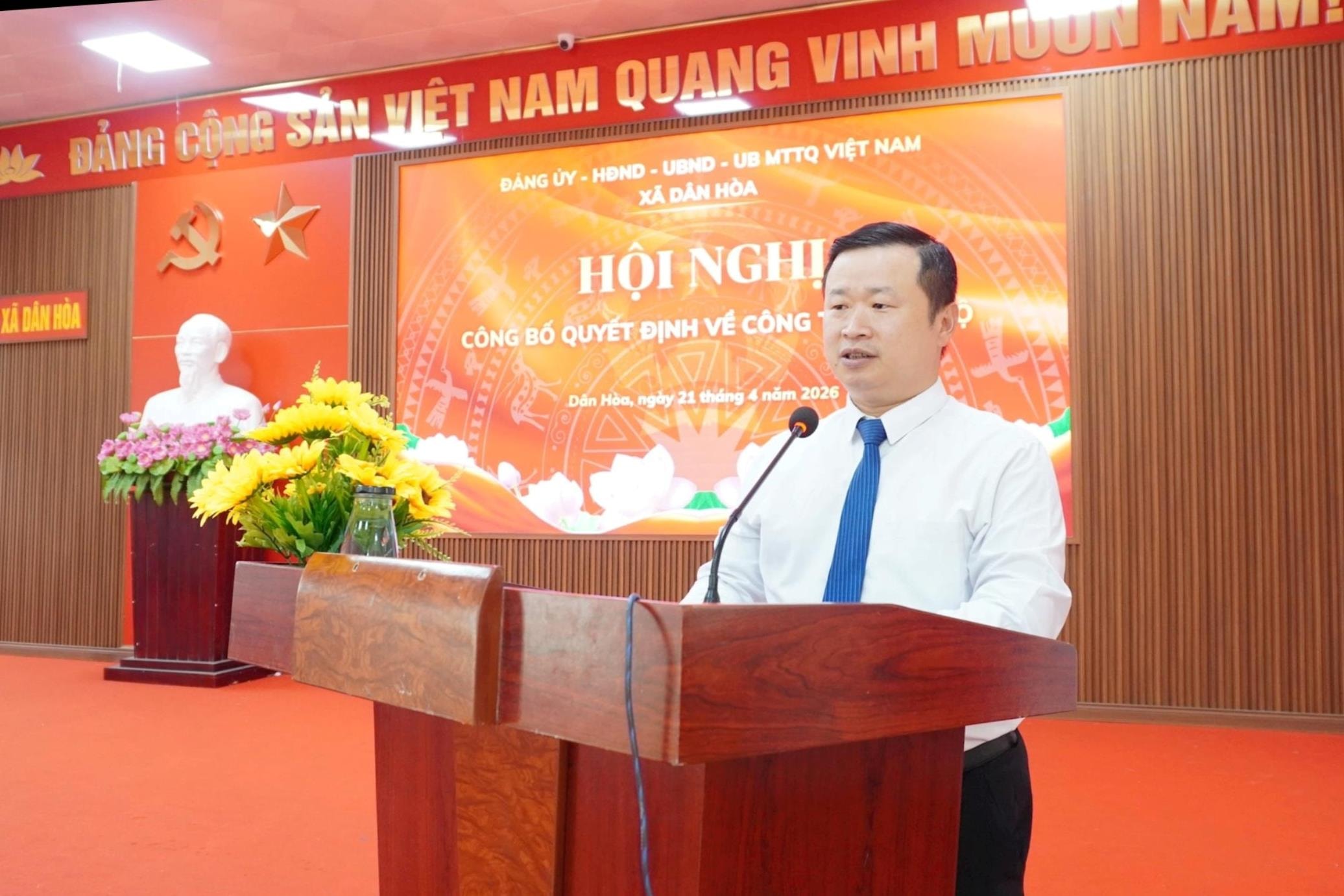 Phát biểu chỉ đạo tại hội nghị, Bí thư Đảng ủy xã, Chủ tịch HĐND xã Dân Hòa Mai Xuân Trường nhấn mạnh, công tác cán bộ là khâu then chốt trong xây dựng hệ thống chính trị vững mạnh. Việc điều động, bổ nhiệm lần này được thực hiện trên cơ sở yêu cầu thực tiễn, năng lực và quá trình công tác của từng cán bộ.