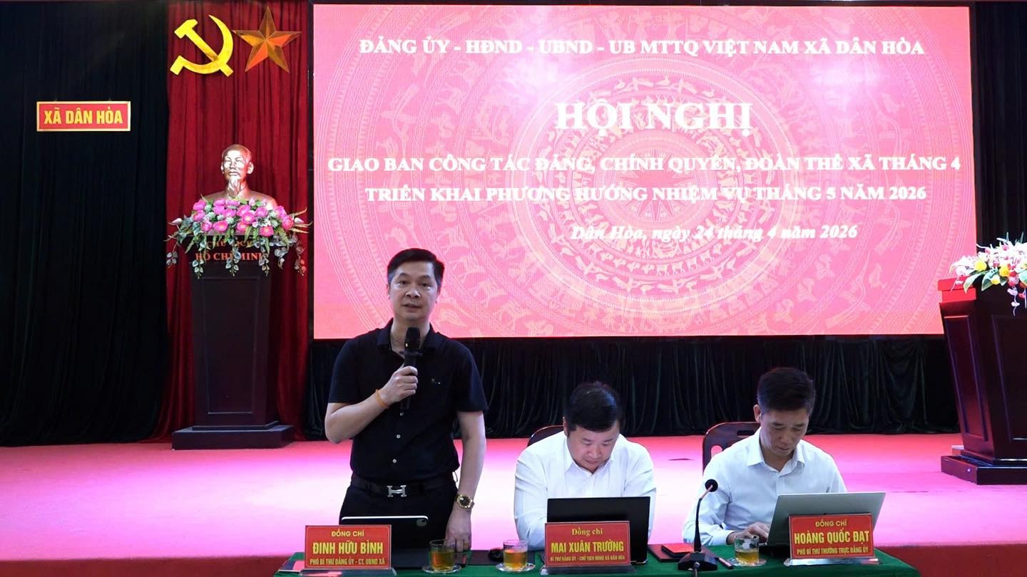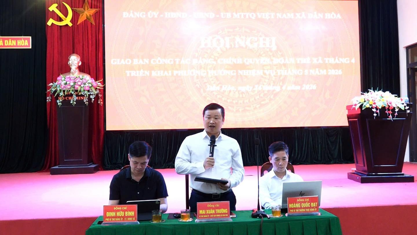 Phát biểu kết luận hội nghị, đồng chí Mai Xuân Trường, Bí thư Đảng ủy, Chủ tịch HĐND xã Dân Hòa nhấn mạnh một số nhiệm vụ trọng tâm trong tháng 5. Trước hết, toàn hệ thống chính trị cần tập trung cao độ cho công tác giải phóng mặt bằng Dự án Khu đô thị thể thao Olympic - dự án trọng điểm, được xác định là “phép thử” đối với năng lực lãnh đạo, điều hành và sự đồng thuận của nhân dân.